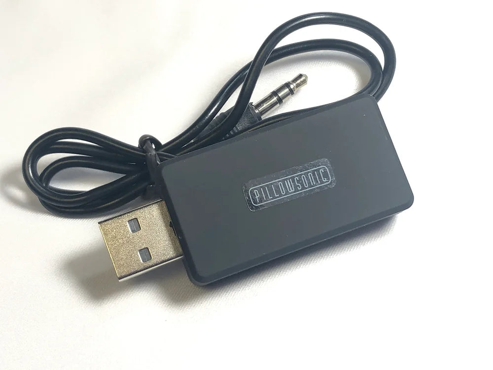 The new Pillowsonic V5 TV Bluetooth Transmitter plugs to your TV USB port, pairs with your Pillowsonic Bluetooth Controller & Digital Player and allows you to listen to your favorite TV programs privately, without headphones or earbuds, with clear stereo sound emerging from your pillow. A great accessory to listen to your late night TV programs without disturbing your spouse or roommate.